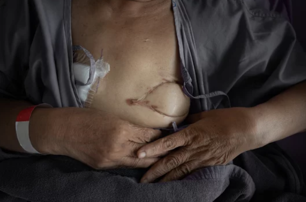 In a dorm room, two college students rush into each other’s arms after a long separation. A husband puts his hands over his wife’s chest — she’s had a double mastectomy.
