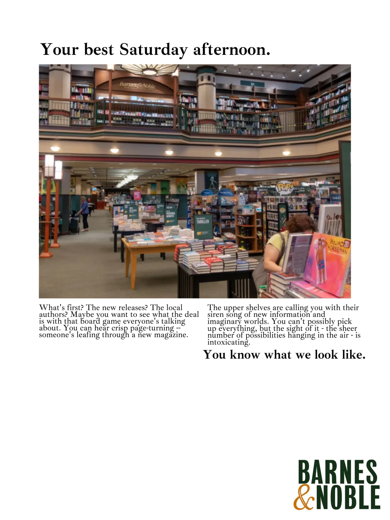 These days, it’s tempting to say that bookstores are obsolete — you can get the same product at cents on the dollar online. But Barnes & Noble isn’t just a bookstore; it’s an atmosphere.